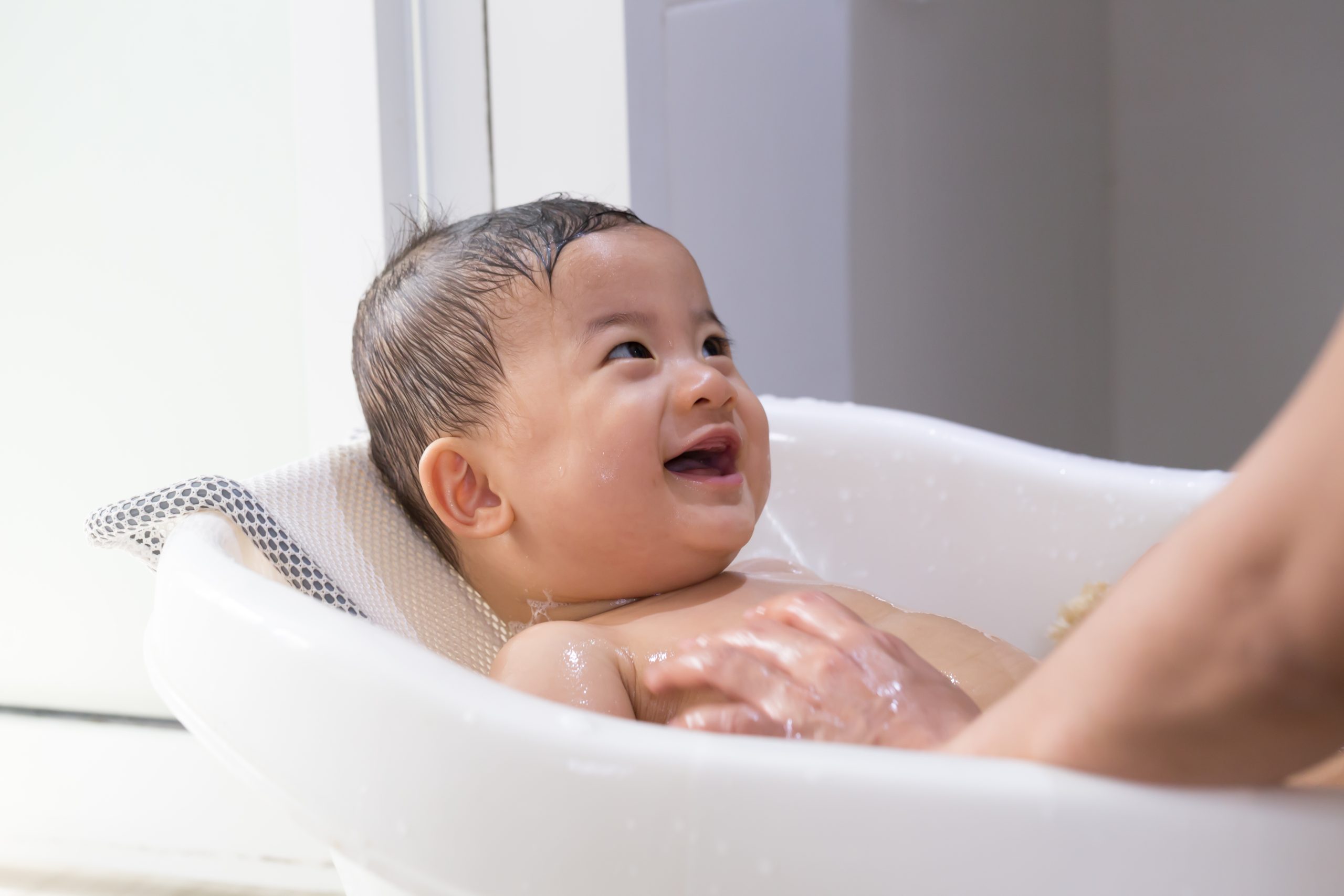 Dùng sữa tắm chuyên biệt cho trẻ sơ sinh, không hương liệu, không sulfate.