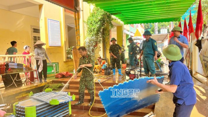 Bên cạnh đó, các tổ chức đoàn thể cũng huy động lực lượng tham gia vệ sinh môi trường, khơi thông cống rãnh, thu gom bùn đất và rác thải sau lũ. Tại các khu phố bị ngập, không khí khắc phục hậu quả diễn ra khẩn trương, đồng lòng.