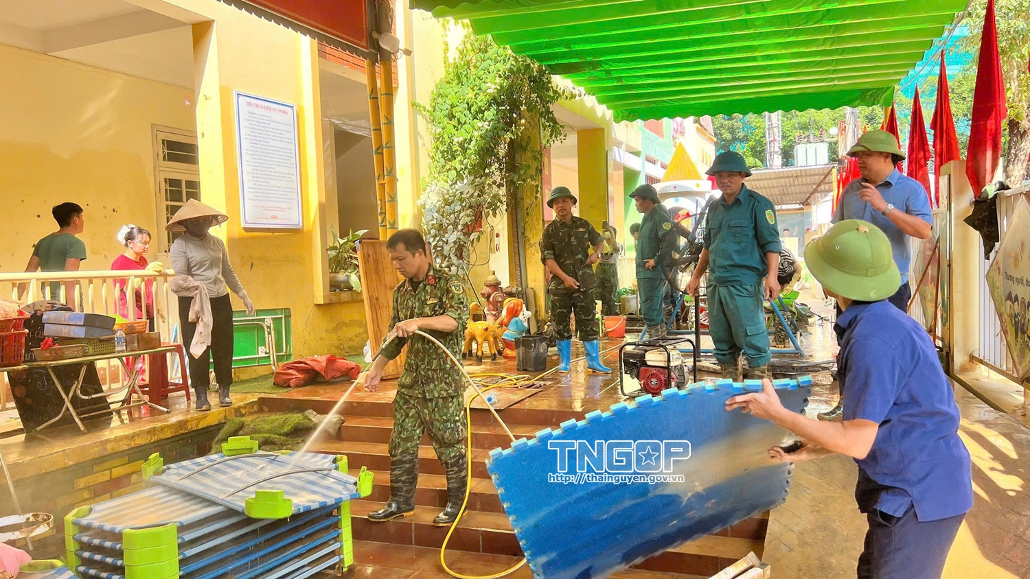 Cùng với đó, chính quyền các cấp cũng tích cực hỗ trợ người dân khắc phục hậu quả. Lực lượng Quân đội, Công an, dân quân tự vệ được huy động tới các trường học, trạm y tế, cơ sở công cộng để tổng vệ sinh, tẩy rửa bùn đất, đảm bảo an toàn trước khi đón học sinh và người dân trở lại sinh hoạt bình thường. Các chuyến hàng cứu trợ gồm nước uống đóng chai, mì ăn liền, lương khô, nhu yếu phẩm thiết yếu được vận chuyển liên tục tới những khu vực còn bị cô lập hoặc mất nước dài ngày.